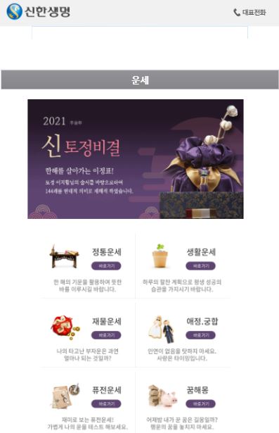 신한생명에서 제공하는 무료운세 서비스는 종류도 다양해서 인기가 높습니다. 2021 신토정비결 컨텐츠가 새로 업데이트 되었네요.