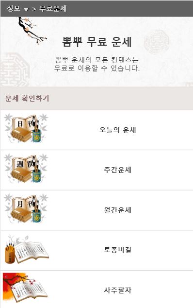 인기 커뮤니티 사이트 중 하나인 뽐뿌에서도 무료운세 서비스가 제공되고 있습니다. 오늘의 운세, 주간, 월간운세와 함께 토종비결, 사주팔자 정보를 무료로 이용할 수 있습니다.