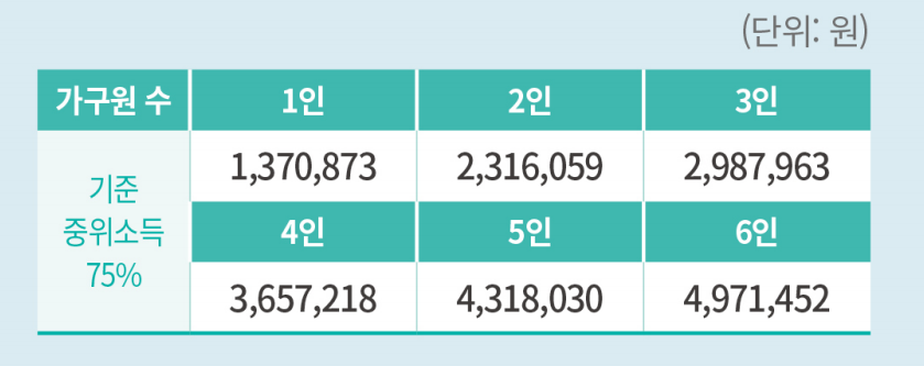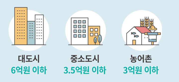 아울러 재산기준도 살펴봐야 합니다. 대도시기준 6억원, 중소도시 3억5천만원, 농어촌 3억원 이하인 경우에만 지원이 가능합니다. (금융재산이나 부채는 재산기준으로 적용되지 않습니다)