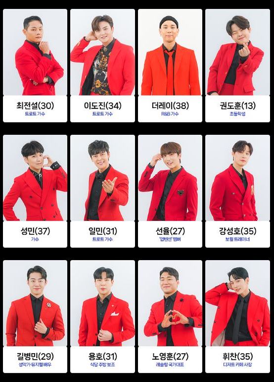 트로트 가수 노지훈, 재하 등도 도전하며 봅슬레이 국가대표 강한, 개그맨 손헌수, 가수 더레이, 가수 성민, 업텐션 멤버 선율, 래퍼 슬리피, 자영업자, 쇼호스트, 아나운서, 초등학생, 슈퍼모델 출신 등 다양한 직업군이 최종 참가자로 나섭니다.